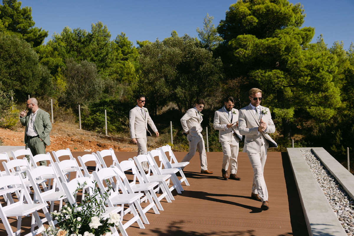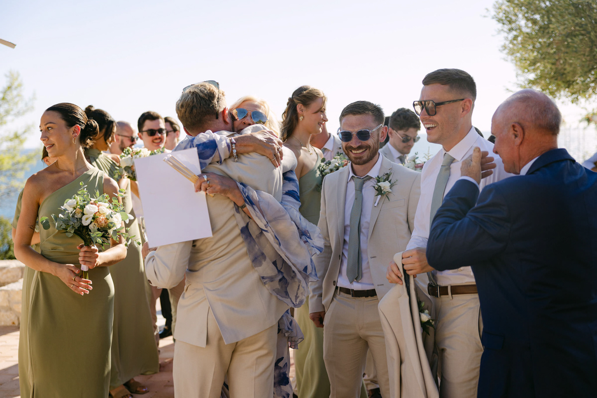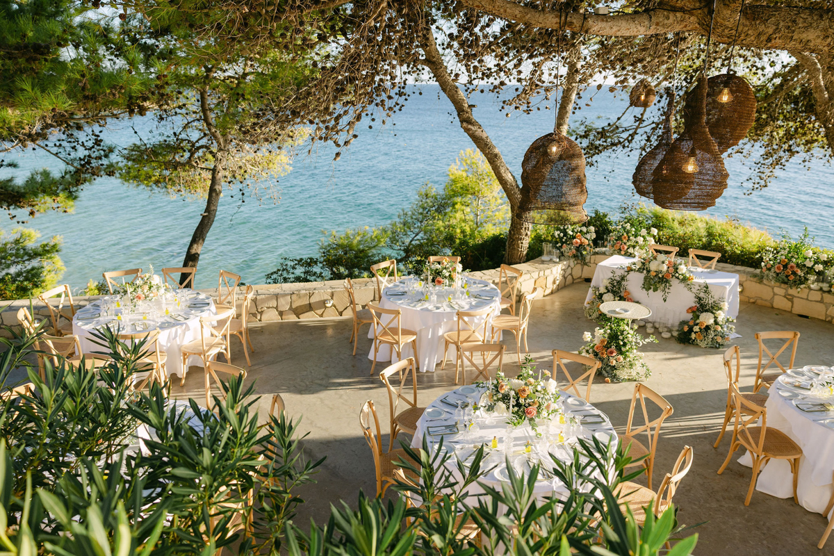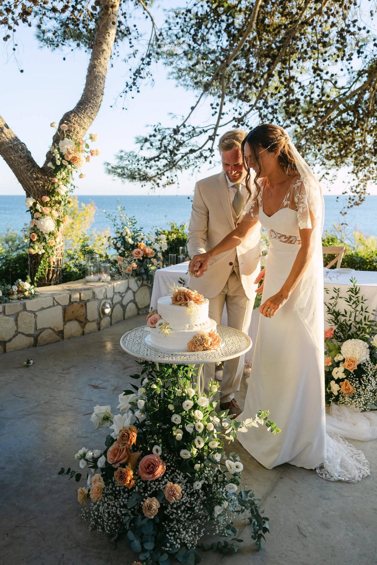 The ceremony arch, adorned with cascading flowers and lush greenery, stood gracefully against the endless blue. It became the perfect frame for their vows — a quiet stage where the sea, the sky, and the wind bore witness.